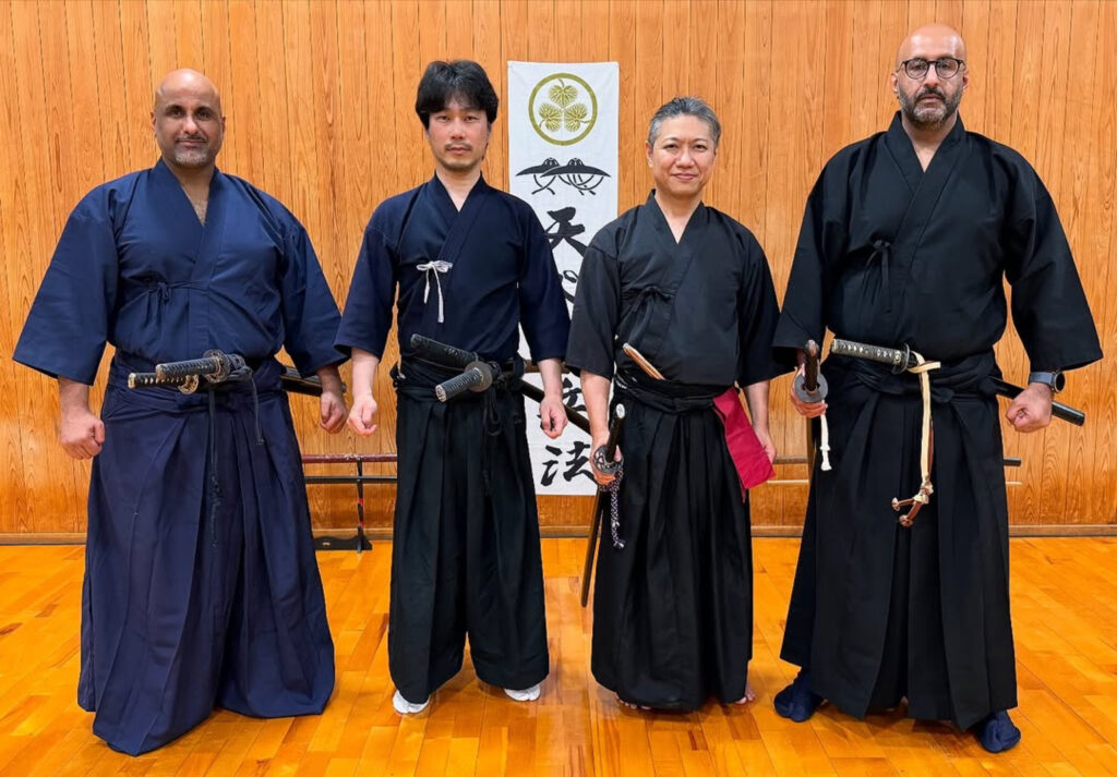 Shihan Ali Al-Manaseer, Shihan Bader Al-Bisher, and Sensei Talal Al-Manaseer took part in a special training course in Japan in the traditional Tenshin-ryu style, under the supervision of Grandmaster Kuwami Masakumo and Grandmaster Ide Ryusetsu—among the leading instructors of this historic martial art, whose roots date back more than 400 years to the early Edo period.